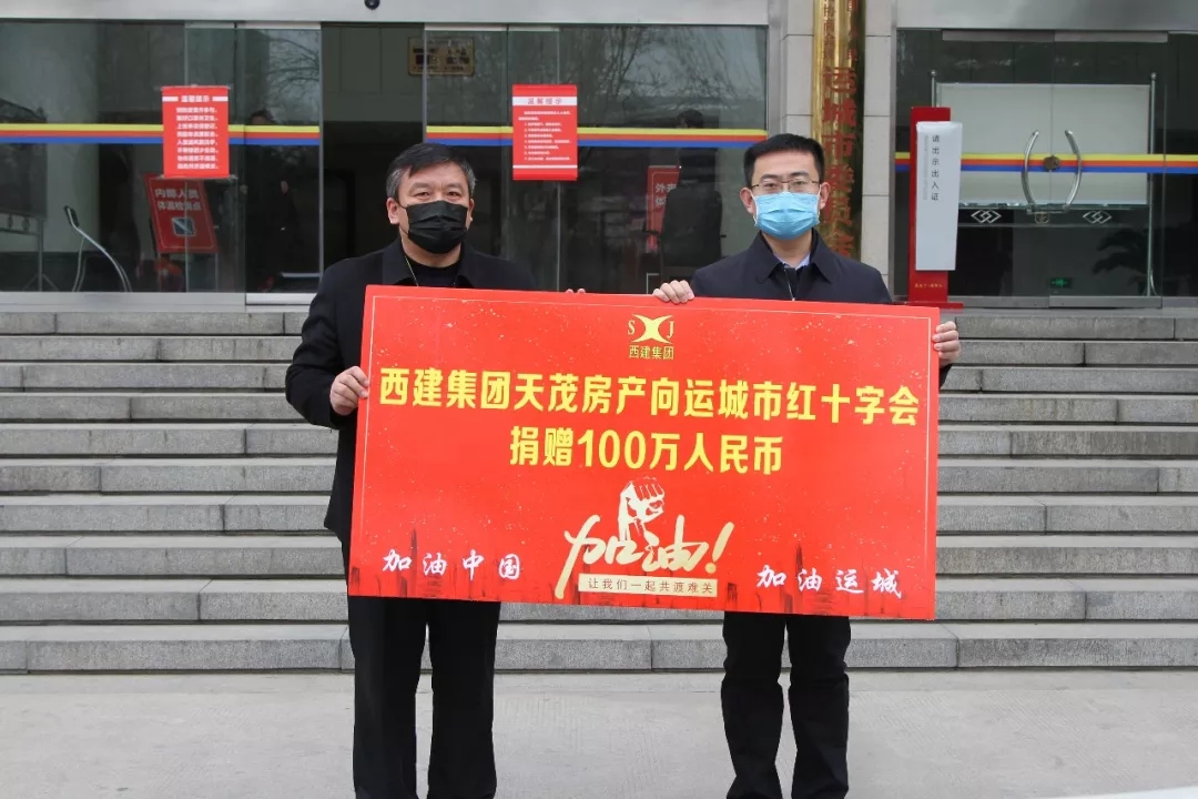 2020年2月13日,西建集團在抗擊新冠肺炎戰疫中減免房租、捐物捐款涉超500萬元。2020年9月16日,西建集團天茂房產分公司工作人員與駐村第一書記王靜,一起前往平陸縣圣人澗鎮毛家山村進行“以購代捐 消費扶貧”活動,出資2萬余元采購村中面粉廠6000余斤面粉,助力該村貧困群眾脫貧增收致富。