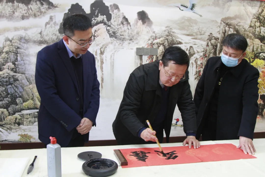 會上授予西建集團董事長劉智強名譽副會長稱號。會議結束后,柴林山親自揮毫贈與西建集團春聯一副。