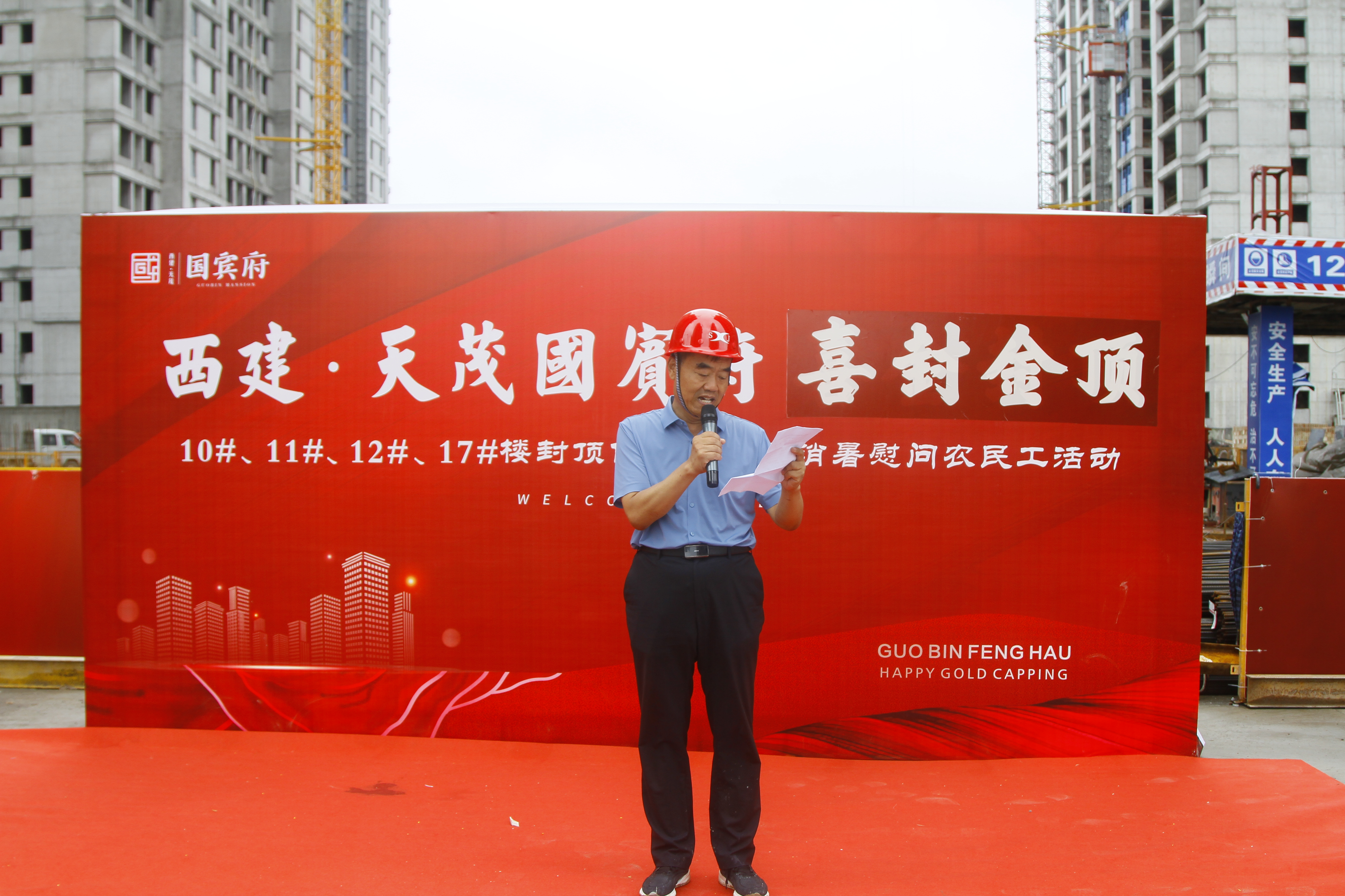 7月16號,西建·天茂國賓府的工地上塔吊聳立、人頭攢動,社會各界人士齊聚這里,熱烈慶祝西建·天茂國賓府10#、11#、12#、17#號樓喜封金頂,標(biāo)志著西建·天茂國賓府一期樓棟基本全部封頂!此次活動在7月16號上午正式開始,除活動工作人員外,特邀農(nóng)民工兄弟、業(yè)主代表、媒體精英、建設(shè)方代表等嘉賓蒞臨活動現(xiàn)場共享喜悅。