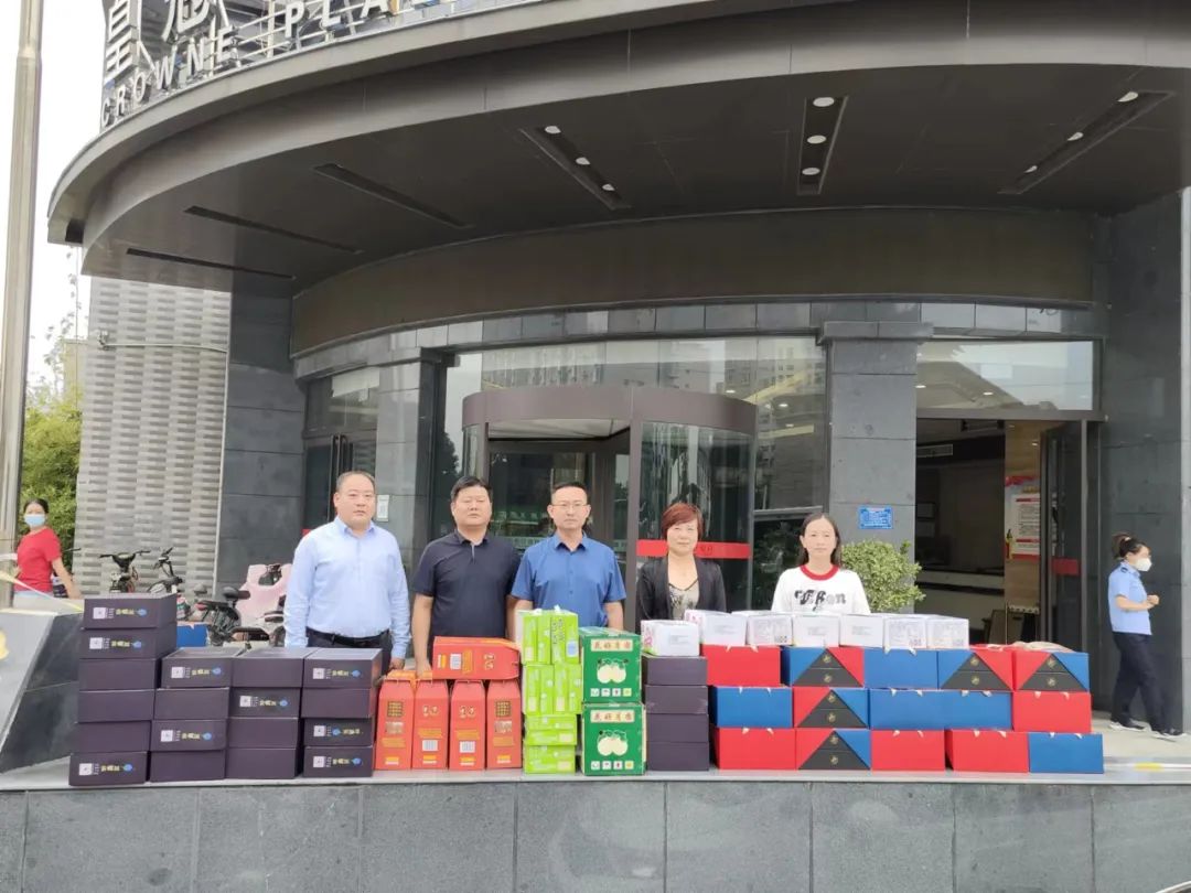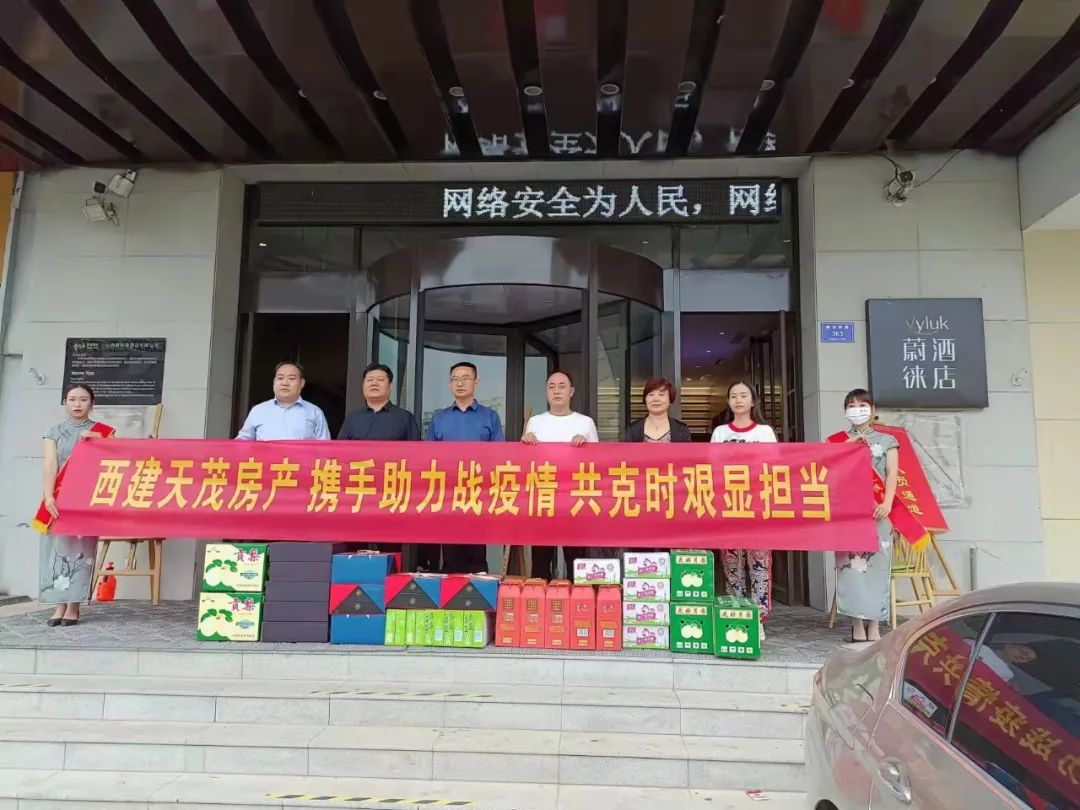 9月8日,在中秋佳節來臨之際,鹽湖區副區長霍國榮,鹽湖區政協副主席馬紅琴及西建集團天茂房產總經理劉忠森,深入11個隔離酒店,為因疫情防控無法歸家團圓的工作人員送去價值近5萬元的防疫慰問品,在闔家團圓的時刻,為他們送上最真摯的溫情。