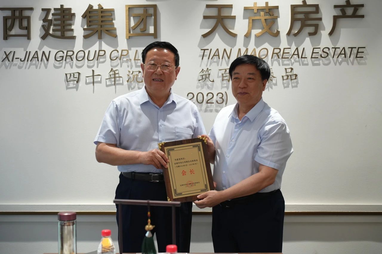 會前,榮譽會長柴林山及“三會”班子成員參觀西建·天茂上林苑展示中心。