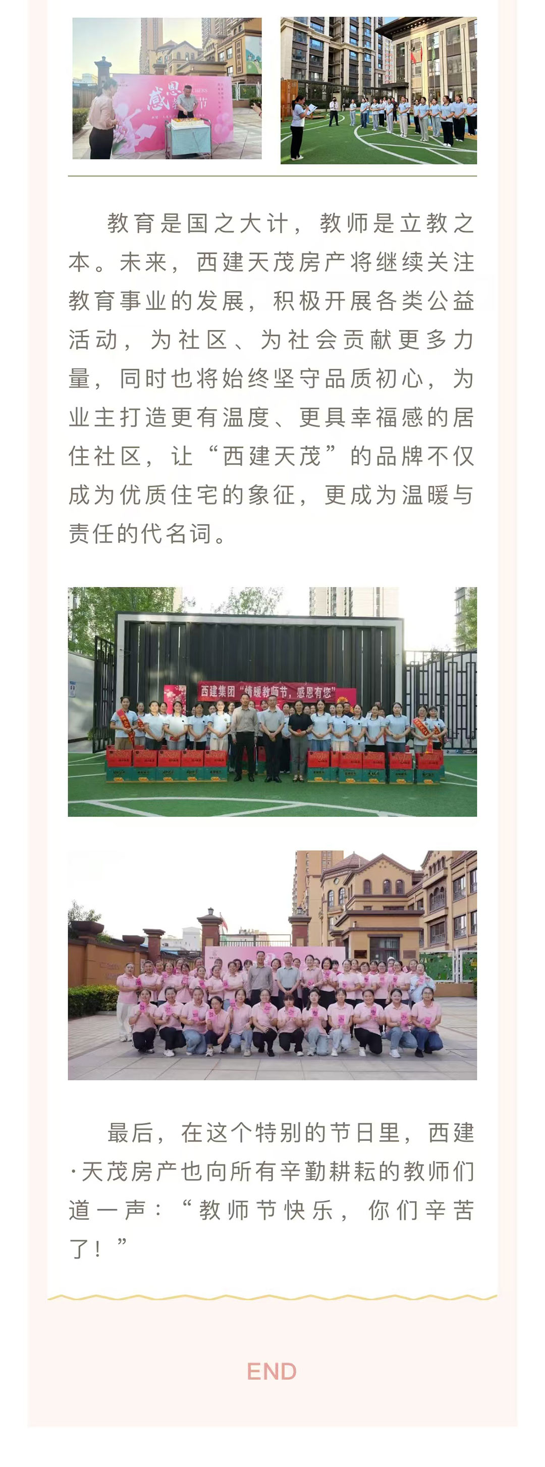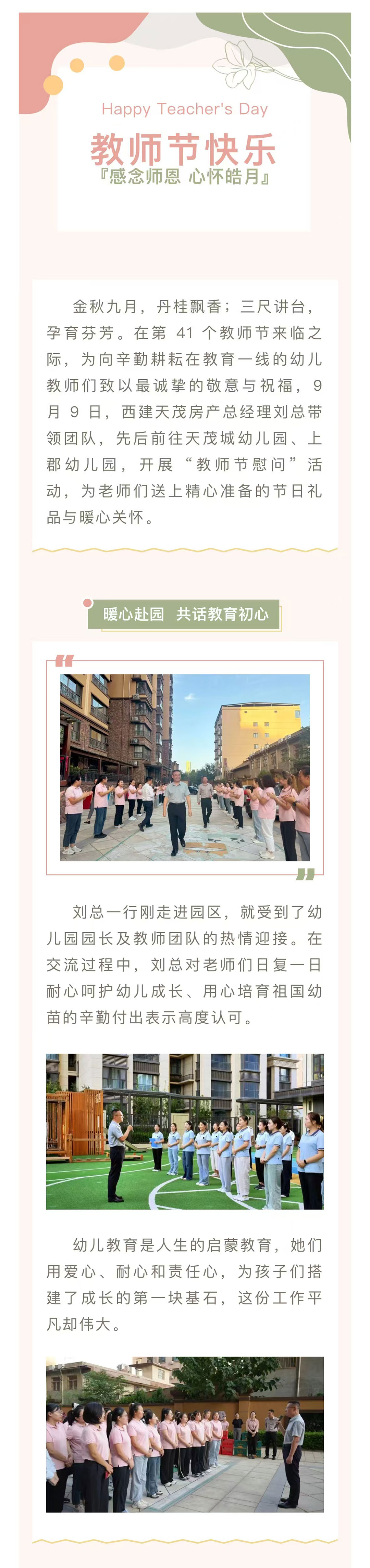 情系園丁 禮贊師恩 | 西建·天茂房產劉忠森總經理帶隊慰問天茂城、上郡幼兒園教師