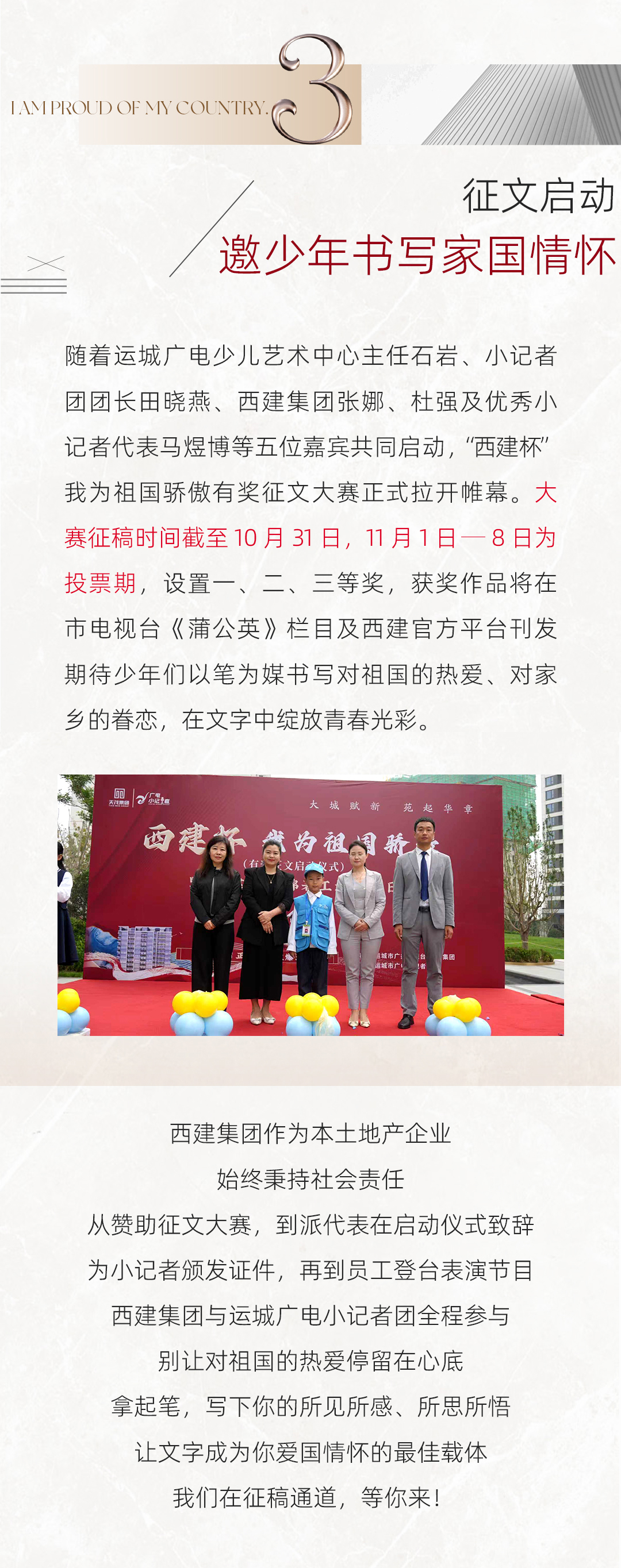 以文抒懷 以愛傳情|「西建杯」我為祖國驕傲有獎(jiǎng)?wù)魑膯?dòng)儀式圓滿舉辦