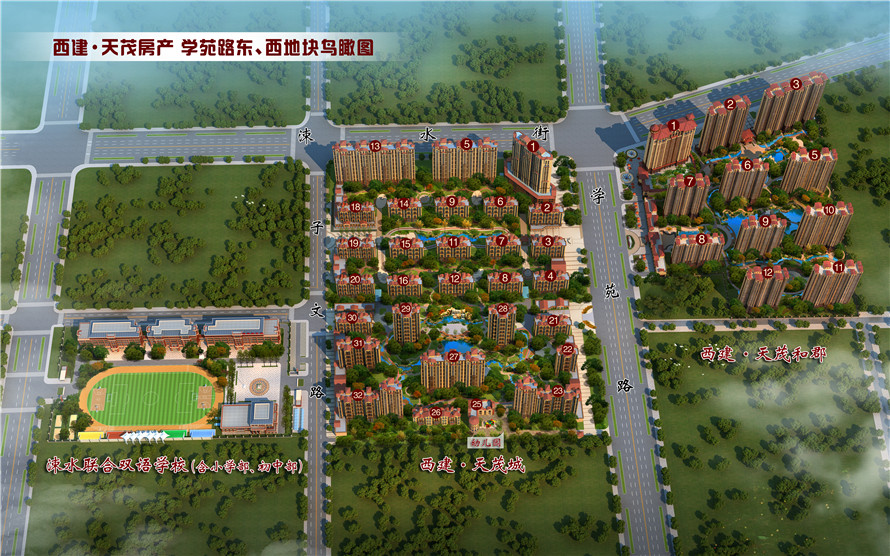 目前,在運城開發了天茂城、天茂和郡、天茂上郡、天茂長郡、天茂上林苑、藍灣半島等品質小區,在夏縣開發了瑤臺花園小區。西建集團在運城開發建設的西建·天茂城,一直致力于打造“綠色、生態、宜居”的文明小區,被評為“山西省園林小區”、“山西省優質結構工程”、“山西省優良工程”。目前,在運城在建的六大品質小區,總占地650余畝,總投資100億元;在芮城在建的十大品質小區,總占地800余畝,總投資110億元,為運城和芮城居民提供品質住房2萬余套。